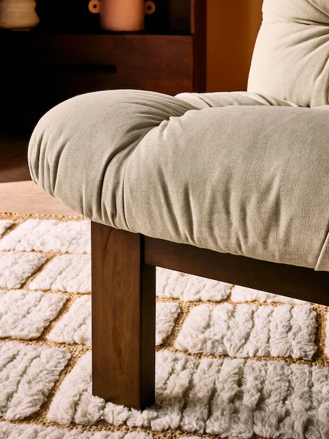 The plush, tufted cushioning provides exceptional comfort, while the sturdy wooden base ensures long-lasting durability. Its neutral tone and soft texture make it a versatile addition—whether placed in your living room, bedroom, reading nook, or office.