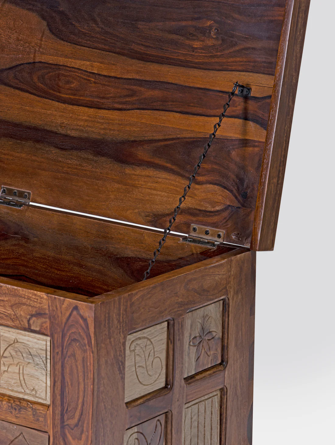 This versatile storage trunk is designed with durable, high-quality fittings and offers ample space to store wine bottles, accessories, or household essentials. Its rich “Misa” finish, combined with a waxed and polished surface, not only enhances its natural beauty but also makes it easy to maintain and clean.