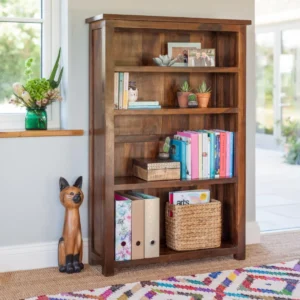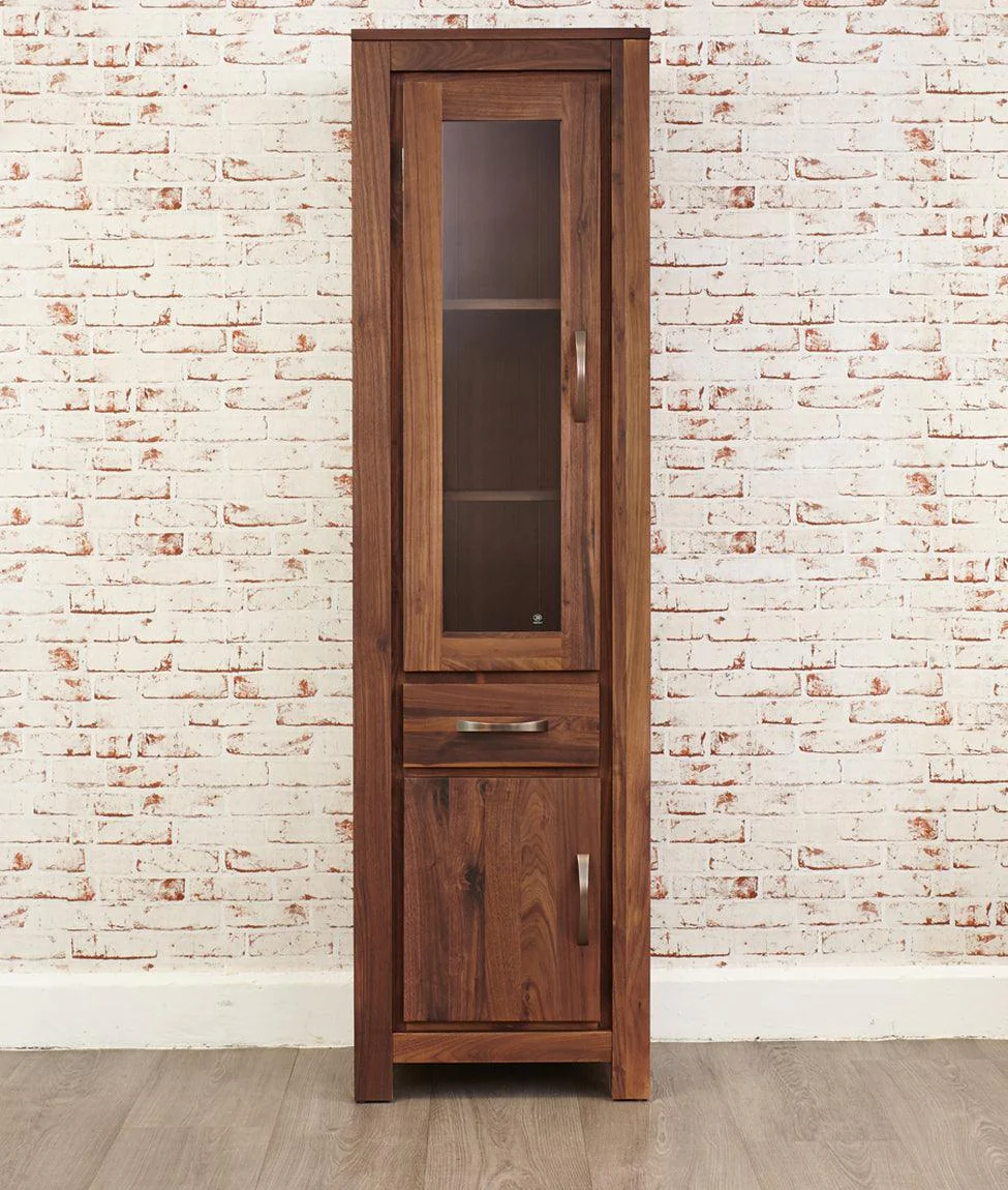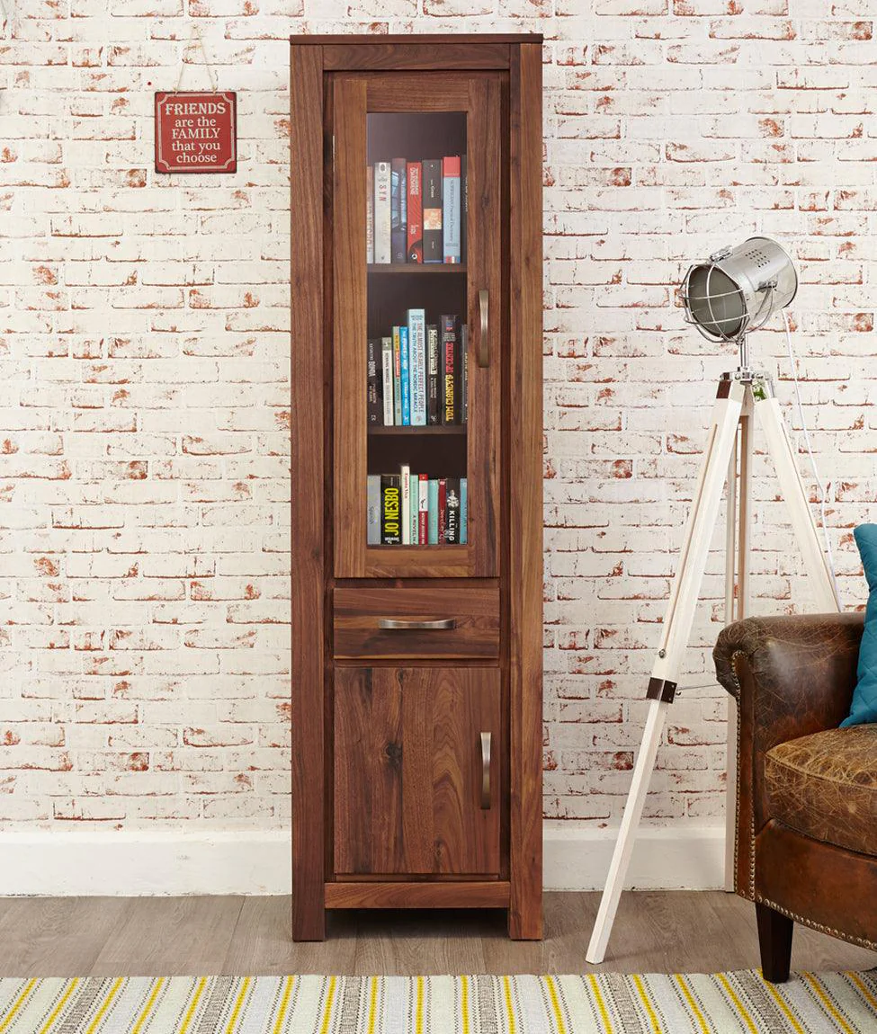 Looking for a stylish and functional display unit to showcase your books, photos, and decor items? Look no further than the Comfywood Wooden Display Unit! Crafted from premium Sheesham wood, this bookshelf boasts a rich walnut finish and a unique contemporary design. With its glass door and multiple shelves, you can easily organize and display your favourite items. The book shelf also features a suitable drawer in the middle and a wooden door at the bottom that opens to two more shelves for extra storage.